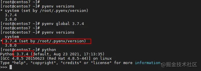 安裝完成之后,再次執(zhí)行pyenv versions就會出現(xiàn)剛才安裝的Python版本。
