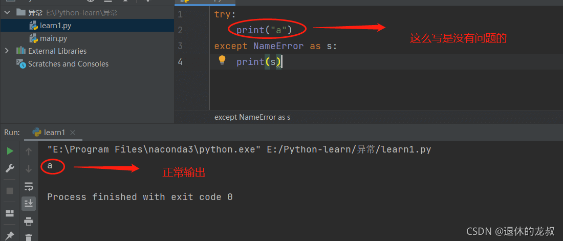 這里的tyr-except并不影響代碼的運(yùn)行,如果你的代碼沒有報(bào)錯(cuò),你就算是寫了tyr-except,它也只會執(zhí)行try那行代碼,那行代碼沒有錯(cuò)誤,那就不會執(zhí)行except里面的代碼。