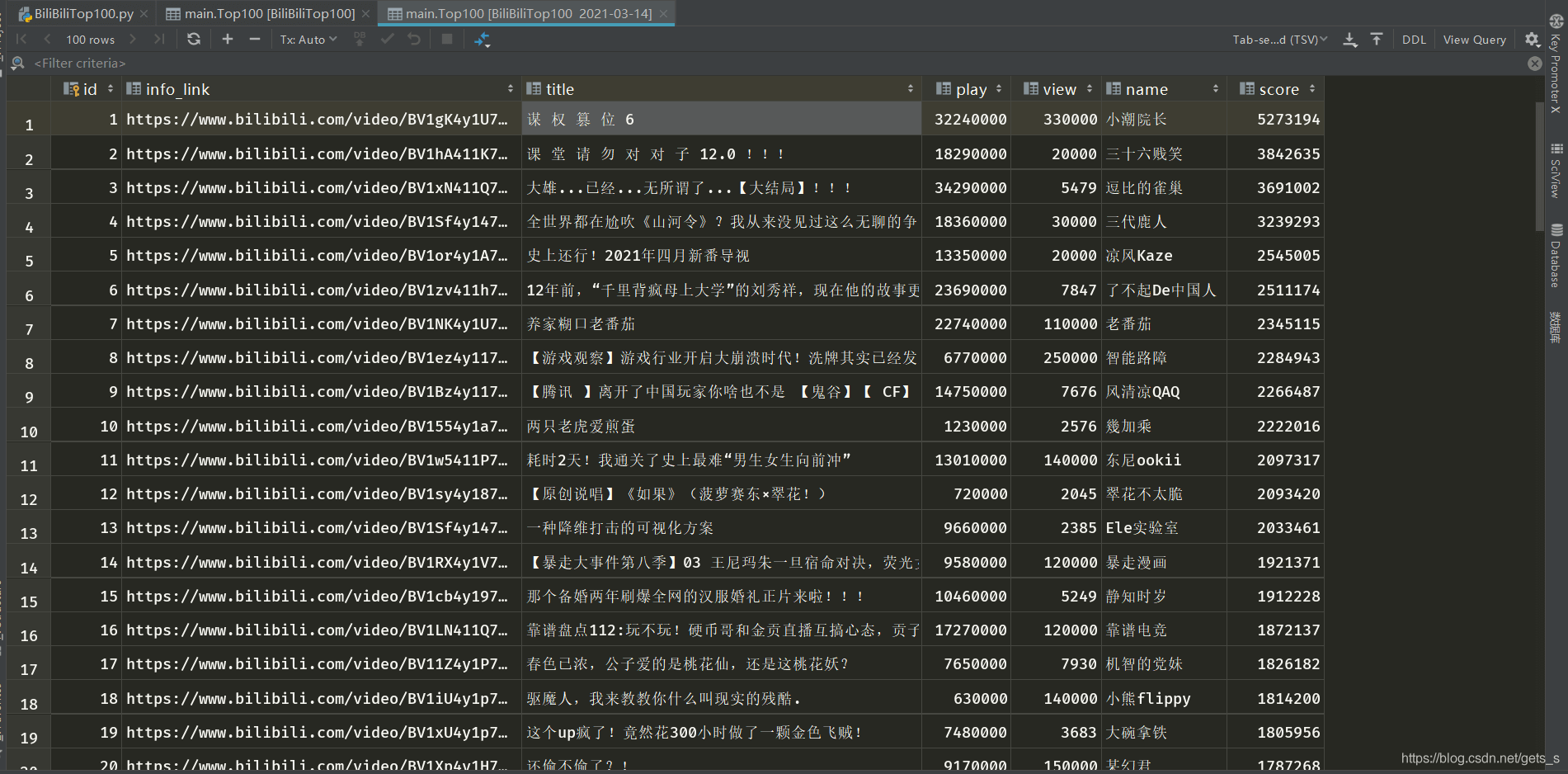 dbpath = "BiliBiliTop100 " + dbname