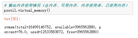比如上面輸出的total=16499146752即為總內(nèi)存16G,已使用內(nèi)存/總內(nèi)存= 76.0%(內(nèi)存使用率)。