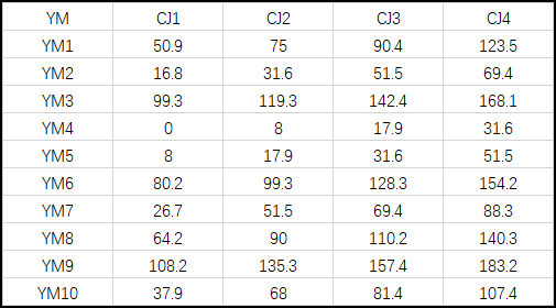 思路:在生產(chǎn)調(diào)度問(wèn)題中,關(guān)于最短加工時(shí)長(zhǎng)的目標(biāo)優(yōu)化問(wèn)題,比較常見(jiàn)的算法是根據(jù) Johnson 規(guī)則推廣的 CDS 算法 ,在此不再贅述,感興趣的朋友可以自行搜索。假定已確定的生產(chǎn)順序?yàn)閅M4-5-2-7-10-1-8-6-3-9,并計(jì)算出了每個(gè)工位的開(kāi)始加工時(shí)間(單位:min),如下表: