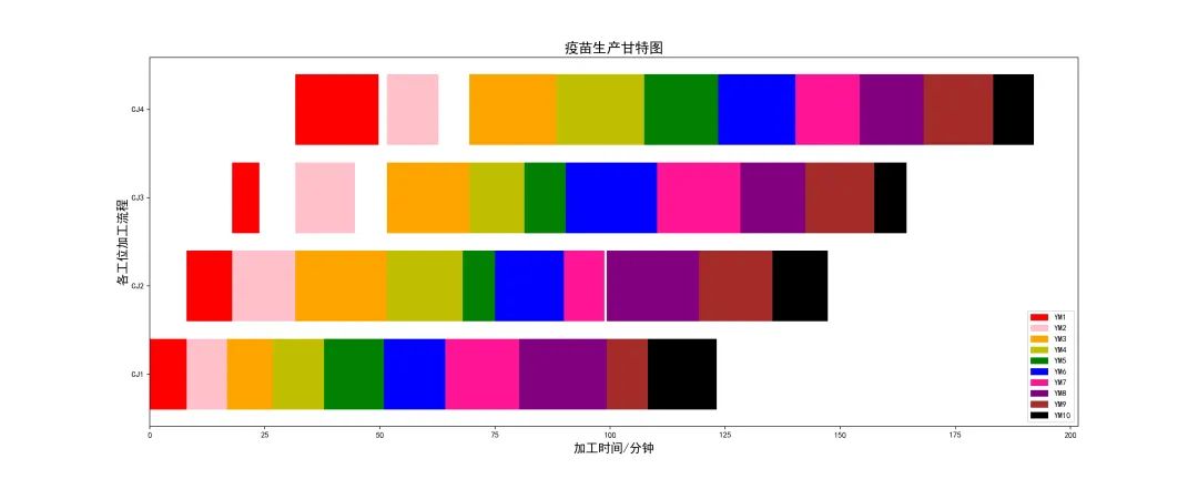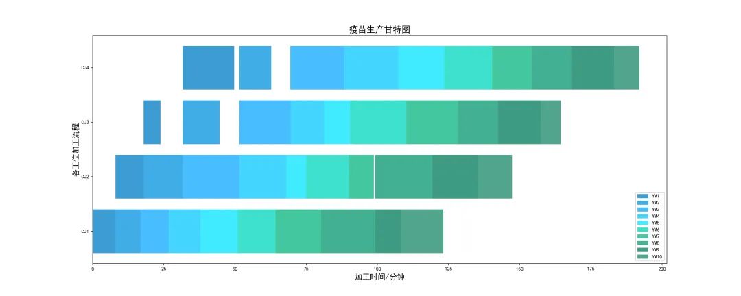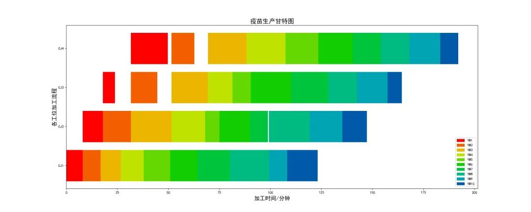 針對(duì)生產(chǎn)過(guò)程呈現(xiàn)的問(wèn)題,我們用Python繪制甘特圖來(lái)進(jìn)行可視化處理。