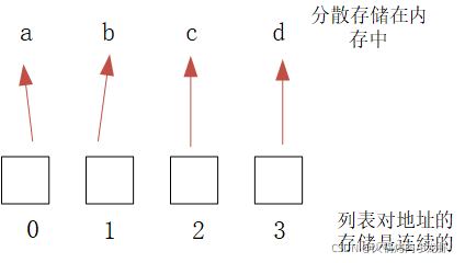 簡單來說,就是列表中開辟了一塊連續(xù)的地址空間,用來存儲引用元素的地址。所以列表中存儲的是地址,而不是具體的值。