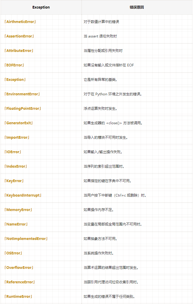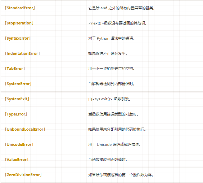 大多數(shù)內(nèi)置異常也有相應(yīng)的類。