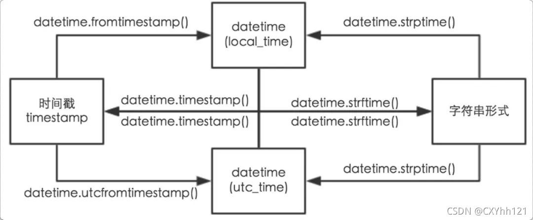 在介紹時間庫之前,我們來看一看python的各個時間格式間是如何轉(zhuǎn)換的