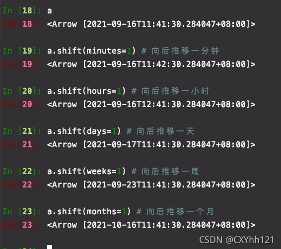 這個是arrow中我認為最好用的一個屬性,他可以讓你隨便將時間進行向前或者向后的推移,基本可以滿足你所有關(guān)于時間上推算的操作,抓緊用起來吧