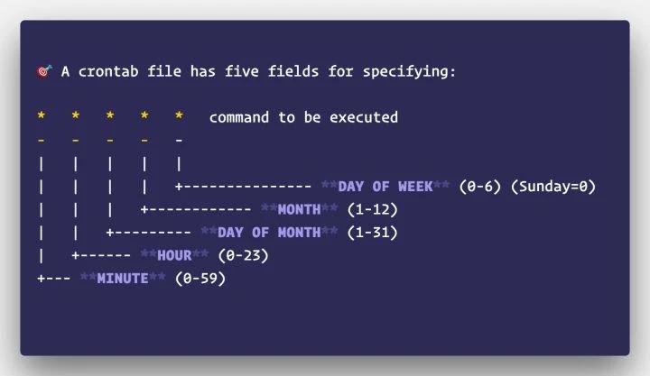 Liunx 中的 crontab 實(shí)用程序是一種易于使用且被廣泛接受的調(diào)度解決方案。Python 庫(kù)python-crontab提供了一個(gè) API 來(lái)使用 Python 中的 CLI 工具。在crontab中,一個(gè)定時(shí)調(diào)度使用 unix-cron字符串格式( *)來(lái)描述,它是一組五個(gè)值的一條線,這表明當(dāng)作業(yè)應(yīng)該被執(zhí)行時(shí),python-crontab 將在文件中寫入 crontab 的計(jì)劃轉(zhuǎn)換為寫入編程方法。