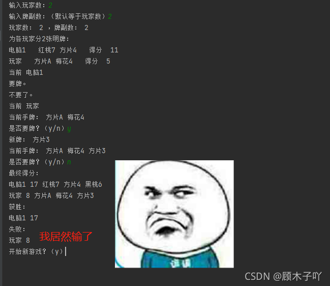 decks = int(input('輸入牌副數(shù):(默認(rèn)等于玩家數(shù))'))