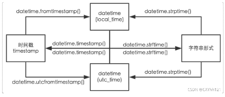在介紹時間庫之前,我們來看一看python的各個時間格式間是如何轉(zhuǎn)換的