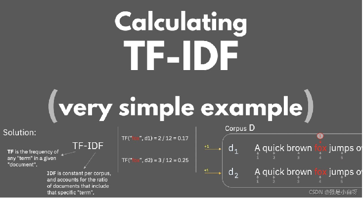 TF-IDF (Term Frequency-Inverse Document Frequency), 即詞頻-逆文件頻率是一種用于信息檢索與數據挖掘的常用加權技術. TF-IDF 可以幫助我們挖掘文章中的關鍵詞. 通過數值統計, 反映一個詞對于語料庫中某篇文章的重要性.