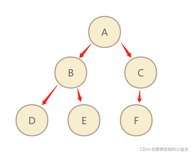 例如,下圖中深度優(yōu)先搜索的遍歷方式時(shí) A 到 B 到 D 到 E 到 F(ABDECF),而寬度優(yōu)先搜索的遍歷方式是 A B C D E F 。