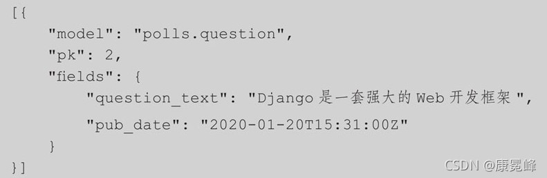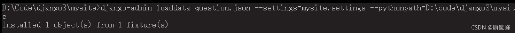 作用:加載數(shù)據(jù)到數(shù)據(jù)庫。 語法:django-admin loaddata fixture [fixture ...] 示例:創(chuàng)建fixture文件question.json,將該文件放在manage.py同級目錄,文件內(nèi)容如下。