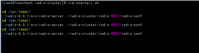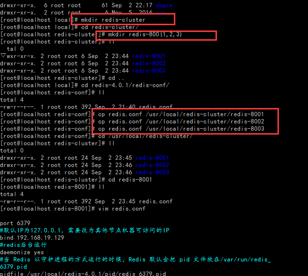 創(chuàng)建redis-cluster目錄,再創(chuàng)建redis-8001,redis-8002,redis-8003節(jié)點(diǎn)目錄,再把redis-conf分別復(fù)制到節(jié)點(diǎn)目錄下