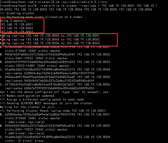 特別注意:這里關(guān)鍵是可選replicas參數(shù),--replicas 2 意思為為每個 master 分配 2 各 slave,replicas表示需要有幾個slave。不填寫這個參數(shù)是可以創(chuàng)建成功的,這樣是三個master 。關(guān)于replicas參數(shù)后面再介紹吧
