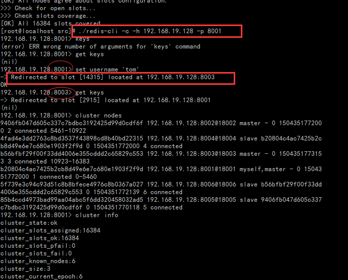 首先,--replicas 1 1其實(shí)代表的是一個比例,就是主節(jié)點(diǎn)數(shù)/從節(jié)點(diǎn)數(shù)的比例。那么想一想,在創(chuàng)建集群的時候,哪些節(jié)點(diǎn)是主節(jié)點(diǎn)呢?哪些節(jié)點(diǎn)是從節(jié)點(diǎn)呢?答案是將按照命令中IP:PORT的順序,先是3個主節(jié)點(diǎn),然后是3個從節(jié)點(diǎn)。