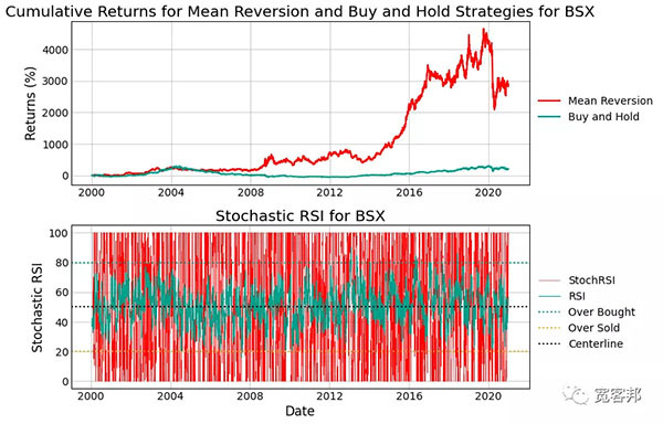 這意味著回歸模型將在 StochRSI 高于 80 時(shí)做空或賣出,并在低于 20 時(shí)買入。