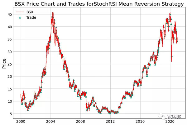在我們研究的 21 年期間,均值回歸策略擊敗了Boston Scientific(BSX)的買入和持有策略,回報(bào)率為 28 倍,而后者為 2 倍。