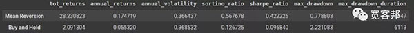查看我們策略的統(tǒng)計(jì)數(shù)據(jù),該模型的唯一優(yōu)勢是比買入并持有方法的回撤時(shí)間略短。