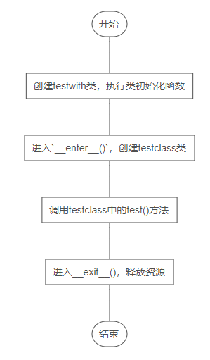 這段代碼一共創(chuàng)建了2個類,第一個testclass類是功能類,用于存放定義我們需要的所有功能比如這里的test()方法。testwith類是我們用來測試with...as...語法的類,用來給testclass類進行善后(釋放資源等)。