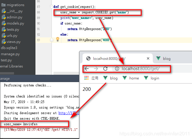 Django可以通過HttpResponse請求對象的COOKIES屬性來讀取Cookie,方法是:request.COOKIES.get('鍵'),這樣我們在瀏覽器訪問路由時就能直接獲取到之前設(shè)置好的Cookie了。