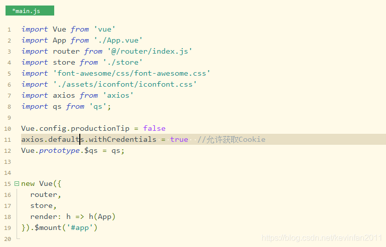 首先需要axios能夠獲取到Cookie,出于安全考慮瀏覽器默認(rèn)是不支持獲取跨域Cookie的,所以這里我們需要對axios設(shè)置進(jìn)行下修改,將withCredentials屬性設(shè)置為true,即允許瀏覽器設(shè)置或獲取Cookie。設(shè)置方法直接在main.js中進(jìn)行全局設(shè)置,axios.defaults.withCredentials = true 。