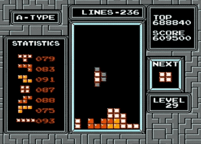 這些完整的橫條會(huì)隨即消失,給新落下來(lái)的板塊騰出空間,與此同時(shí),玩家得到分?jǐn)?shù)獎(jiǎng)勵(lì)。沒(méi)有被消除掉的方塊不斷堆積起來(lái),一旦堆到屏幕頂端,玩家便告輸,游戲結(jié)束。