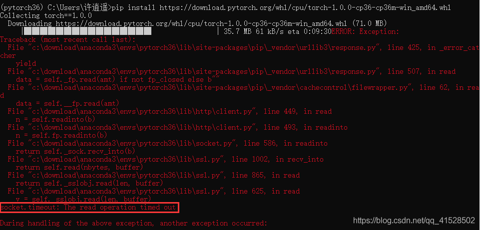 有同學(xué)使用清華源/科大源來(lái)加速,但是我試了一下仍然不行o( ̄┰ ̄*)ゞ,最后還是采用這種方式。經(jīng)歷過(guò)三次超時(shí),終于。。。(原來(lái)超時(shí)也是碰運(yùn)氣的)