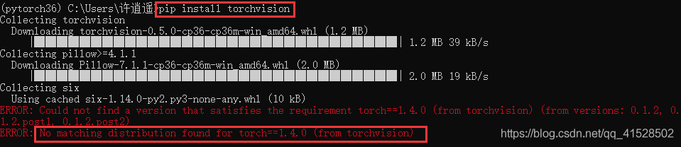 然而安裝torchvision時(shí)爆出了錯(cuò)誤,,,我裝了一下午臉終于白了一次,你給我說(shuō)沒(méi)有匹配的版本o( ̄┰ ̄*)ゞ
