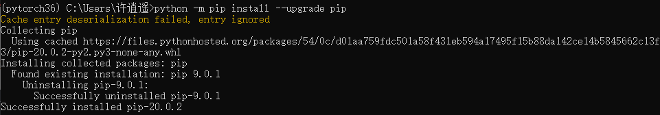 不出意外,這里的pip的版本會(huì)比較低,所以避免以后出錯(cuò),還是提前升級(jí)一下省心