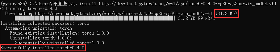 pip install http://download.pytorch.org/whl/cpu/torch-0.4.0-cp36-cp36m-win_amd64.whl