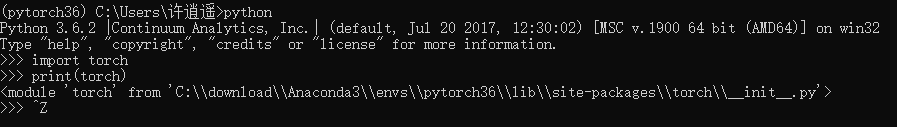 如下,可以成功導(dǎo)入torch,并輸出<module .....>就說(shuō)明安裝成功了