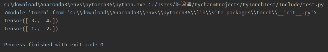 import torch print(torch) x1 = torch.Tensor([3, 4]) x2 = torch.FloatTensor([1, 2]) print(x1) print(x2)