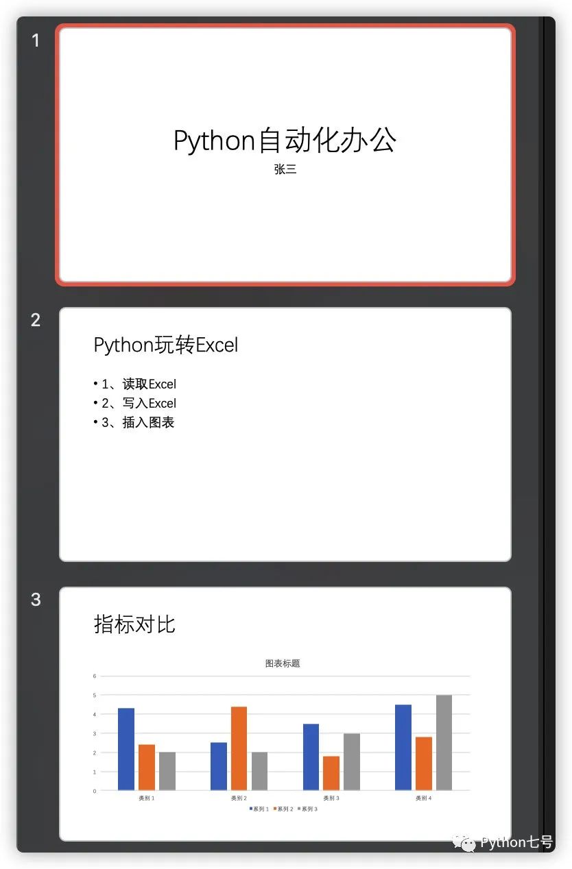 PPT 分為內(nèi)容和格式,用 Python 操作 PPT,就是利用 Python 對 PPT 的內(nèi)容進行獲取和填充,修改 PPT 的格式并不是 Python 的強項。因此,當(dāng)你有一堆 PPT 要做的時候,先做好一個帶格式的 PPT,然后用 Python 復(fù)制這個 PPT 文件,然后再對其進行讀寫。