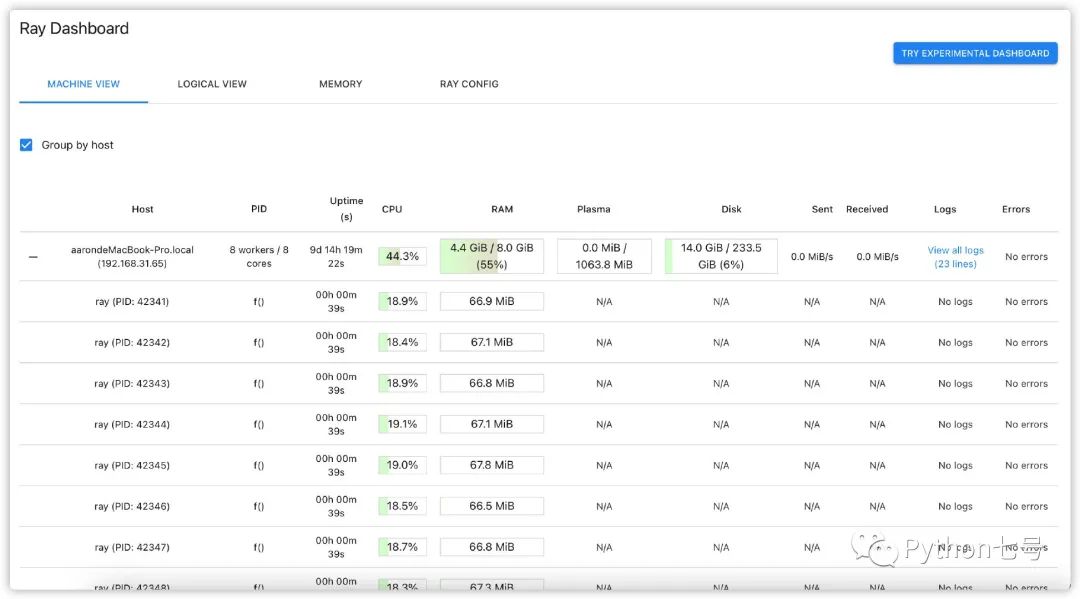 當(dāng)然了,上述的分布式計(jì)算依然是在自己的電腦上進(jìn)行的,只不過是以分布式的形式。程序執(zhí)行的過程中,你可以輸入 http://127.0.0.1:8265/#/ 查看分布式任務(wù)的執(zhí)行情況:
