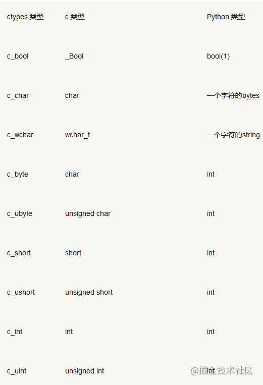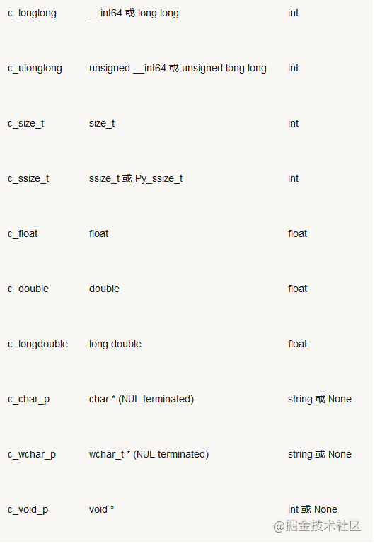 了解 ctypes模塊之前,我們需要先了解 ctypes 提供了哪些用于兼容的數(shù)據(jù)類型: