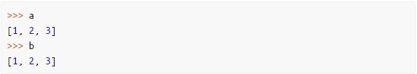 您將再次看到我們剛剛創(chuàng)建的新列表看起來與a和b指向的list對象相同: