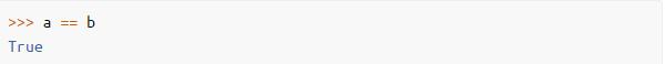 因為兩個列表對象看起來相同,所以當我們使用“==”運算符比較它們的相等性時,我們會得到預期的結果: