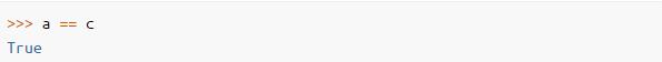 這就是有趣的地方,如果我們使用“==”運算符來比較列表副本c和初始化列表a,您希望看到什么答案?