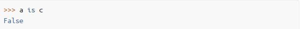 好吧,我希望這是您所期待的,這個結果告訴我們c和a有相同的內容,它們被Python認為是相等的,但它們是否指向同一個對象?我們來看看is操作符: