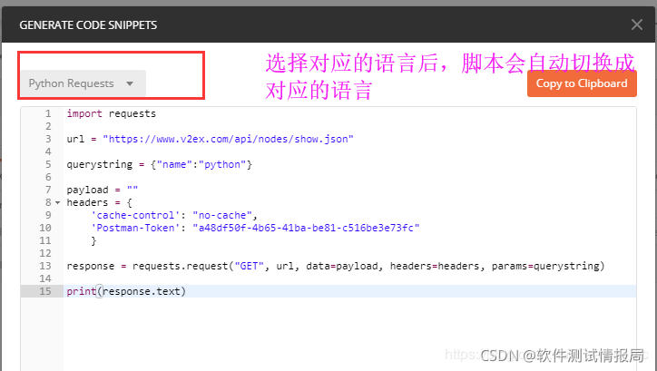 - 選擇對應的python下的requests語言(兼容python2和python3)