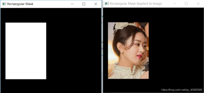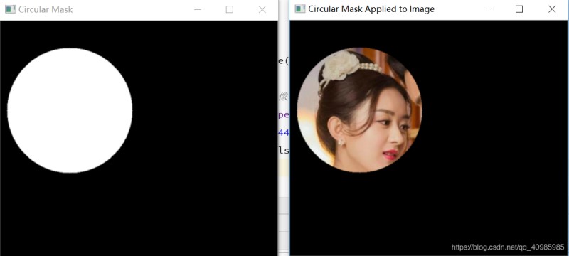 圓形掩碼 VS 效果圖如下:(圓形掩模顯示在左邊,掩模的應(yīng)用在右邊。實(shí)質(zhì)上可以使用任意形狀的掩碼圖像,如矩形、圓、線、多邊形等從圖像中提取區(qū)域)