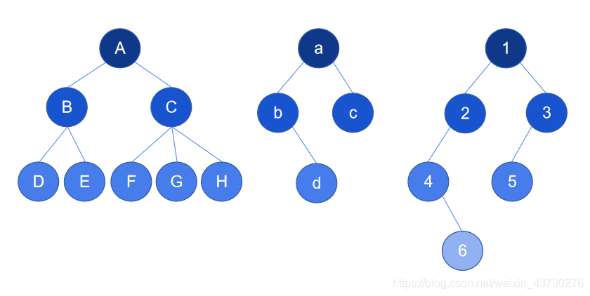 1. 二叉樹:每個(gè)節(jié)點(diǎn)最多含有兩個(gè)子樹的樹稱為二叉樹,如下圖。二叉樹是最常用的樹結(jié)構(gòu),可以對二叉樹進(jìn)一步細(xì)分(另外的文章再仔細(xì)研究)。