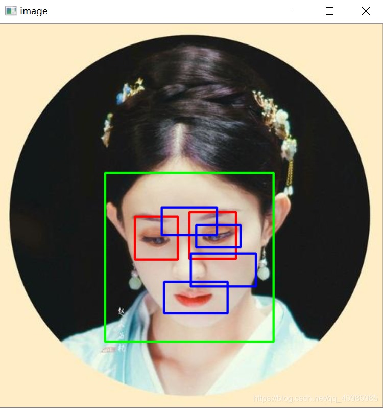 面部、眼睛、嘴部檢測(cè)效果圖如下: