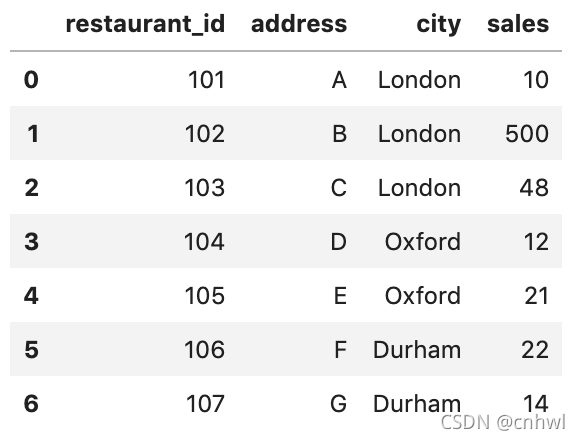 2、用 merge() 函數(shù)把 city_sales 合并回去,得到的 df_new 如下: