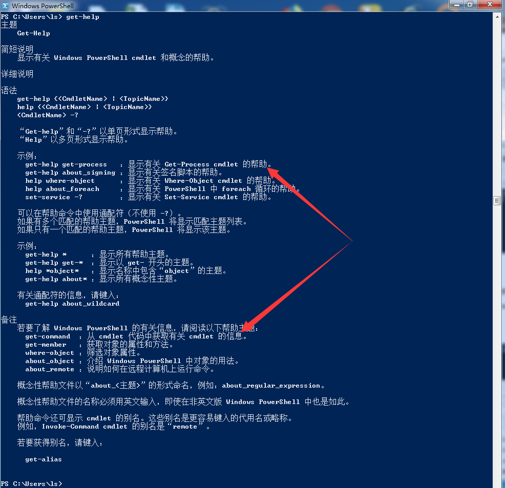(不過我們前邊說過powershell命令是cmdlet格式,help也使用cmdlet格式,help只是get-help的一個(gè)別名)
