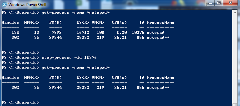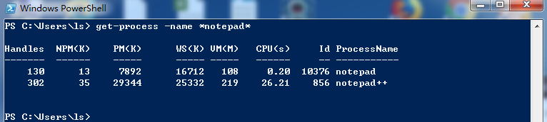 整個(gè)要執(zhí)行的命令就是:get-process -name *notepad*