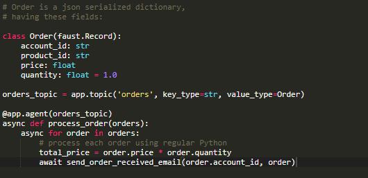 您可能會被async和await這兩個關(guān)鍵字嚇到,但是您在使用Faust時不需要知道asyncio是如何工作的:只要模仿這些例子就可以得到您想要的結(jié)果。