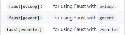 Faust還定義了一組setuptools擴展,可以用來安裝Faust,并且有一個給定特性的依賴關(guān)系。