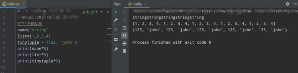 “*”在運算符中表示乘法,在數(shù)據(jù)類型(除數(shù)字類型、字典外)中,表示重復(fù)的次數(shù):