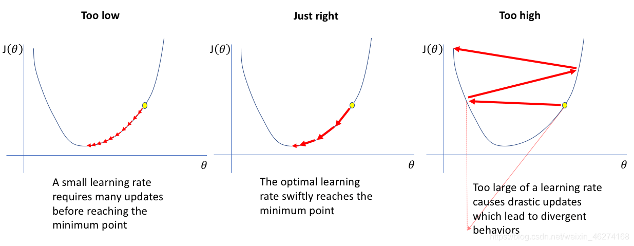 簡單的來說, 如果學習率越大, 我們訓練的速度就越大, 但找到最優(yōu)解的概率也就越小. 反之, 學習率越小, 訓練的速度就越慢, 但找到最優(yōu)解的概率就越大.